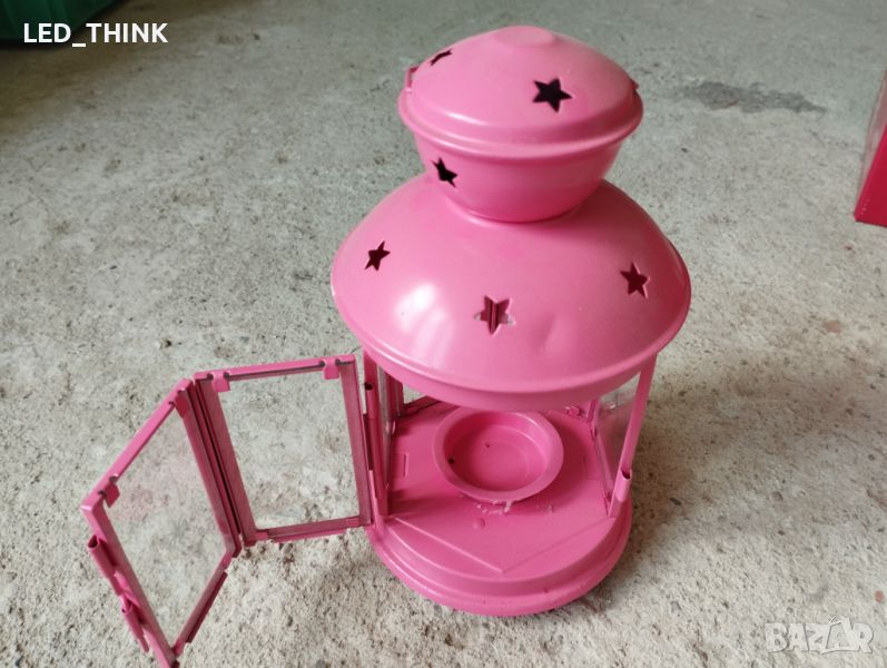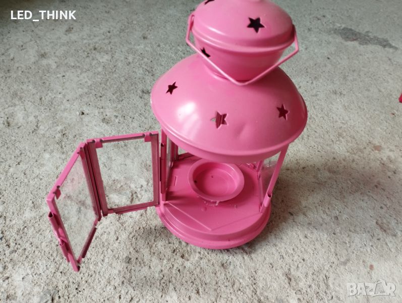 Свещник с вратичка за свещичка и звездичка. То е розово.