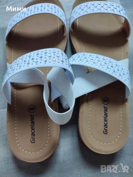 Нови бели сандали с камъчета. Задната част, която се слага на глезена е ластик.