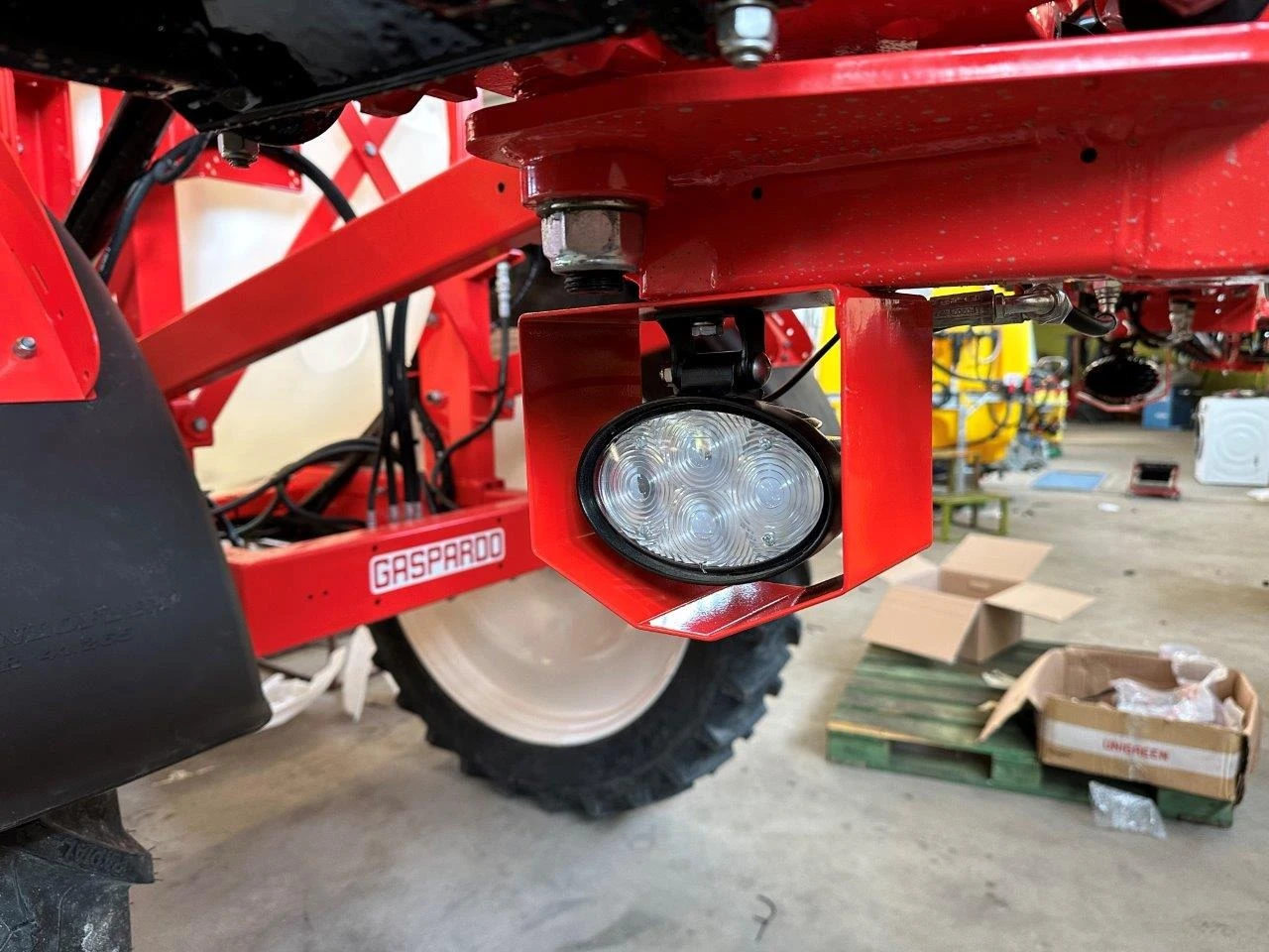 пръскачка Gaspardo модел Campo 32P/24 ISOTRONIC ОПИСАНИЕ И ТЕХНИЧЕСКА ХАРАКТЕРИСТИКА: Обем на основния резервоар 3200 литра от полиестер с ротационни дюзи за разбъркване на разтвора и за изплакване на бидона Захват на щангите 24 метра нов модел на щангата Ala 624 Окачване на щангите тип Паралелограм Твърд теглич Бидон за чиста вода 300 литра Мост с променлива ширина Бъркалка в основния резервоар Резервоар с чиста вода за измиване на ръцете Хидравлично-пневматична стабилизация на щангите за работа в наклон Помпа Comet BP 281 л/мин Миксер за смесване на препарата с дюза за почистване на шишетата от препарата 2 смукателни филтъра и филтър за високо налягане Троен дюзодържач с дюзи Осветление за движение по пътя Накрайник за напълване от външен източник 2 Хидравлични функции с контрол от ISOBUS Терминала Гуми 270/95 48 Кардан Електронно-регулируема разпределителна система с 9 секции ISOTRONIC оборудване с ISOBUS модул за поддържане нормата на пръскане, независимо от скоростта на движение и възможност за подвързване към Навигационна система за Автоматично изключване на секциите при препокриване и в края на полето.