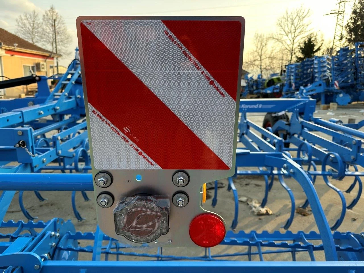 Описание и техническа характеристика: Модел KORUND с работна ширина 7, 5 метра Работни органи тип KORUND MARATON с размери 30х12х400 за култивиране на дълбочина от 2 до 12 см с разположение на работните органи в 4 реда Прецизно регулиране на работната дълбочина на органите Възможност за завъртане на 180 градуса на острието на лемежа, което удвоява времето за употреба на елемента Работна скорост от 8 до 12 км/ч Минимална мощност на трактора от 155 до 235 к. с. Предна подравнителна дъска Гуми за регулиране на работната дълбочина с размери 10. 0/80-12 Валяци с диаметър 330мм и 270мм с възможност за настройка на дълбочината на работа Осветление за движение по пътя Хидравлично заключване на рамата за транспорт Хидравлично сгъване и разгъване на рамата