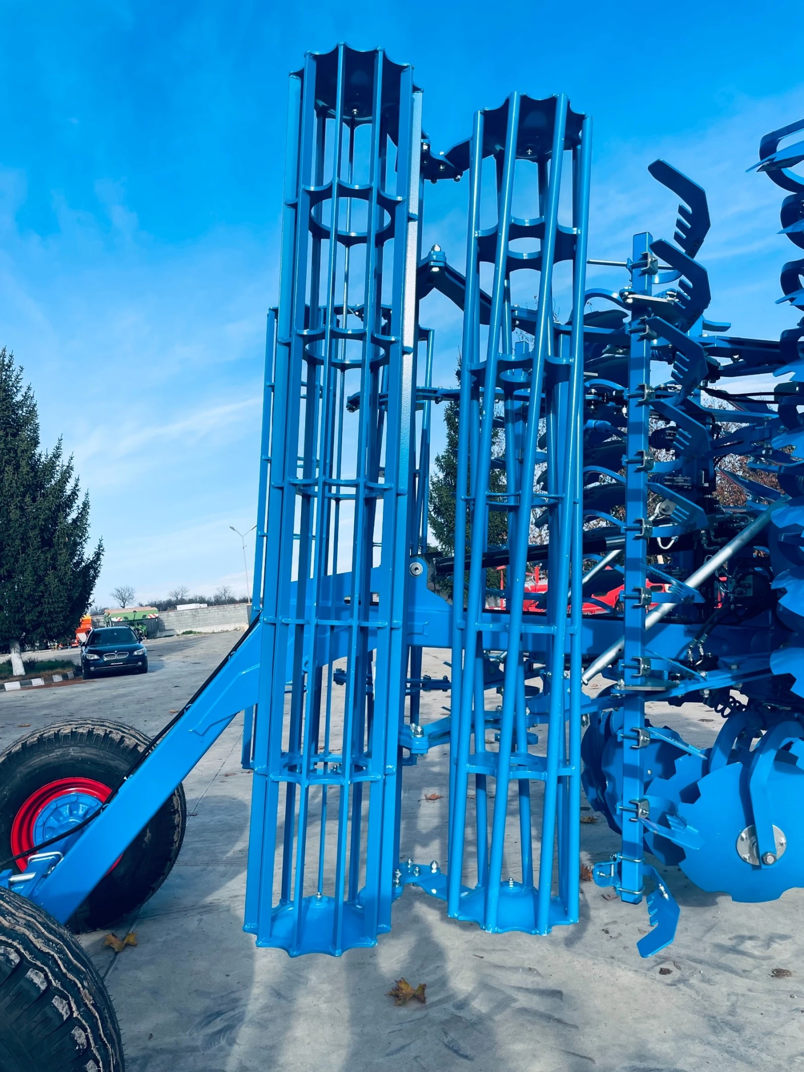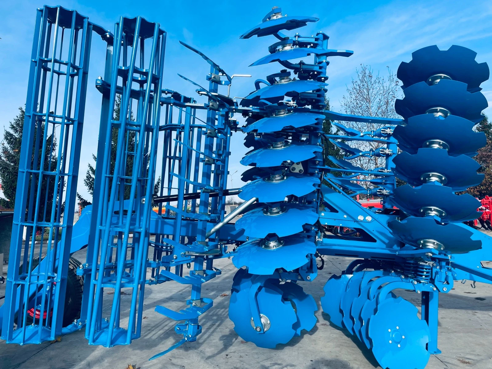 Брана Lemken модел Rubin 10 500 KUA Описание и техническа характеристика: Работна ширина 5 метра Сгъваема прикачна рама Високоустойчиви дискове DuraMaxx 645 мм диаметър Капсуловани лагери с дълъг живот без нужда от обслужване Отделно окачване на всяко тяло Специален ъгъл на атака 17 градуса при предните дискове и 15 градуса при задните дискове Дефлекторни странични дискове /Lateral limiter/ Брой дискове: 40 Пружинна защита на работните органи Двоен Валяк DRF 400х400 мм Прикачна рама с транспортни колела с размери 16/70-20 Работна дълбочина до 14 см Собствена маса 3900 кг Осветление за движение по пътищата
