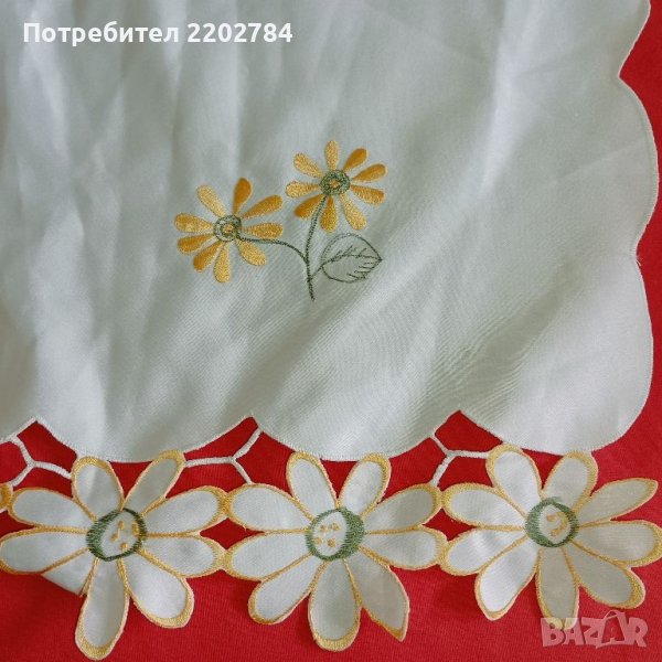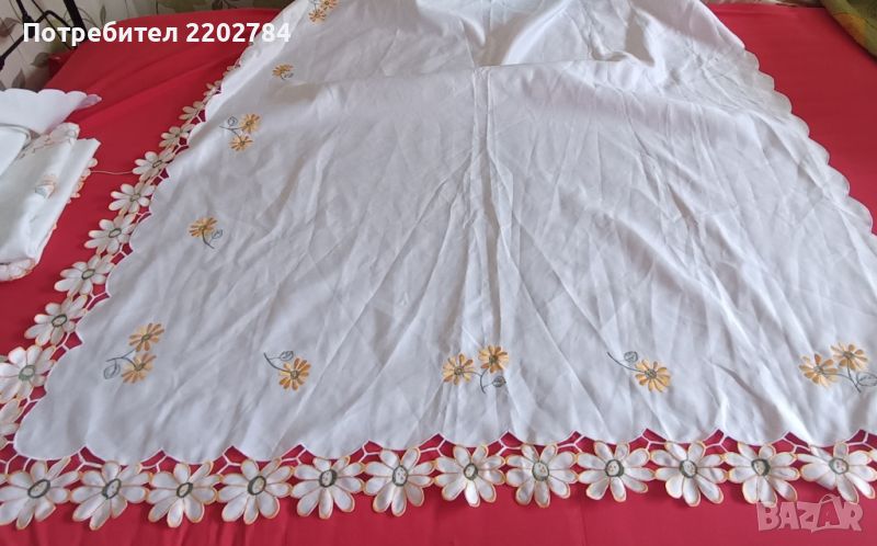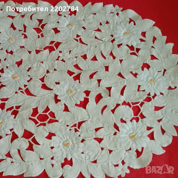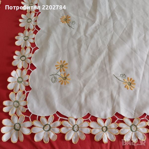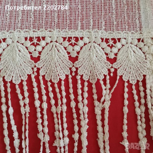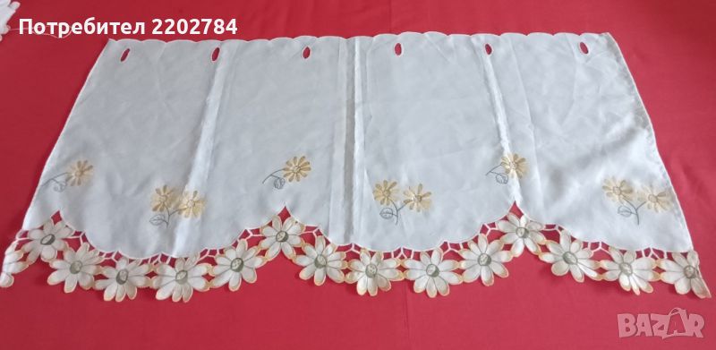 Към комплекта предлагам и каре,което си пасва идеално с пердетата.Рязана дантела с бродерии.Размери 40/125см.