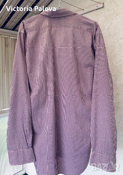 Прекрасна маркова риза за лято, много тънък памук. Рамо - 48см, ГО - 62см, дължина отпред - 78см, отзад - 83см, объл долен край, ръкав - 65см. Ризата няма никакви забележки, освен маншетите - поизтрити са, цената е съобразена с това.