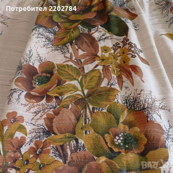 пердета с великолепни щампи на големи цветя.Неизползвани.Размери на едното: ширина 280см, дължина 110см.С перделик без копчета и запазени шнурове и може да се регулира ширината според нужната.