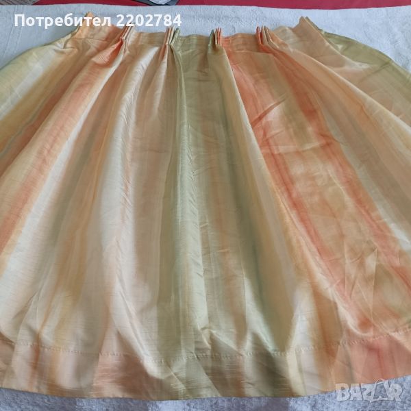 На последните две снимки е малко перденце от сатен в прекрасни цветове.С перделик.Размери: ширина в горната част 55см ( може да се увеличи) в долната част 140см,дължина 80см.Без забележки.