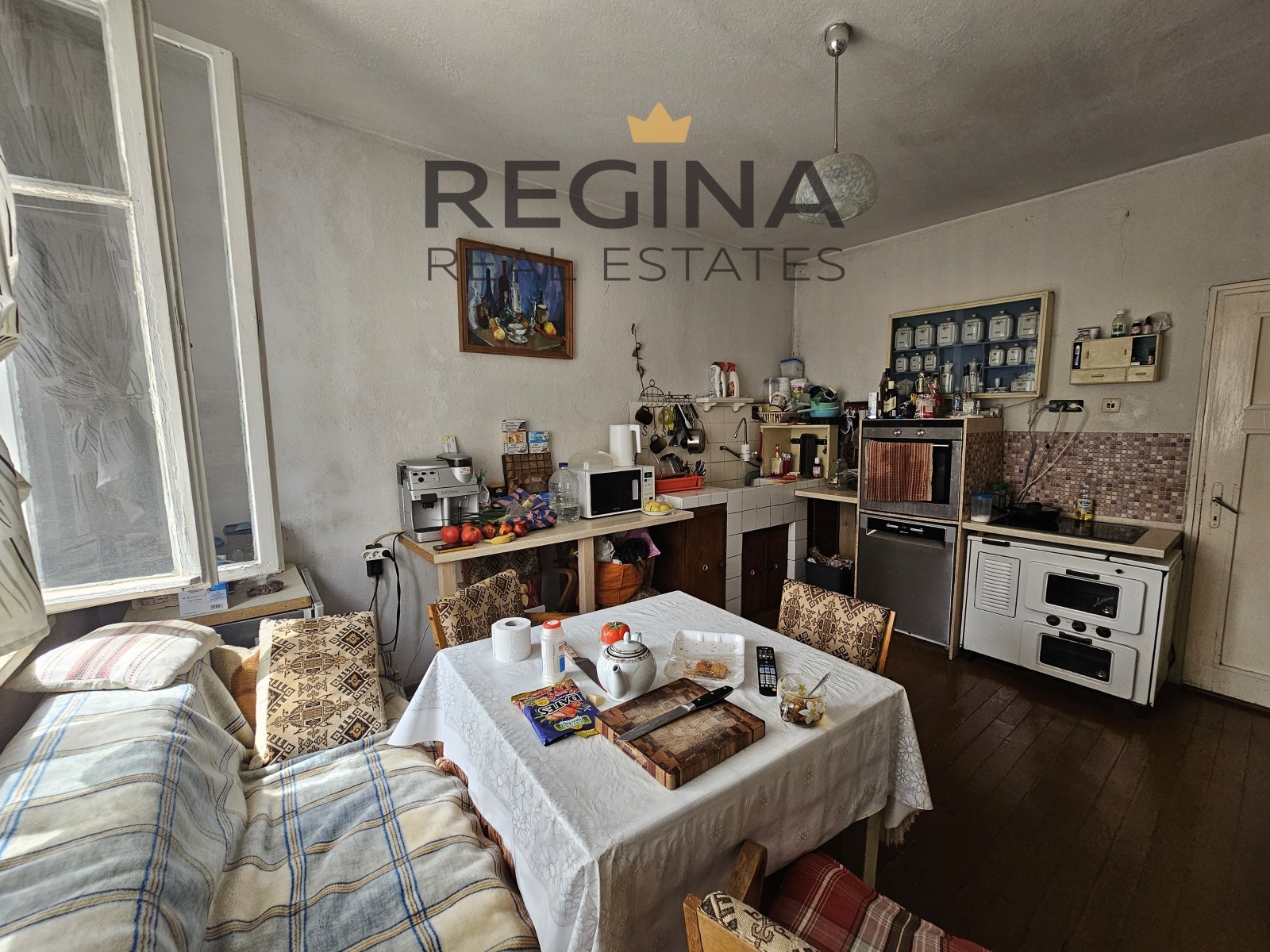 Жилището е разположено на 1-ви жилищен етаж от триетажна масивна къща и се състои от: коридор, кухня с всекидневна, хол, 3 спални, тоалетна, перално помещение и баня. Има две тераси: едната е южна, а другата е остъклена, има мивка и се използва като лятна кухня. Към продаваният имот има прилежащо дворно място с площ 305 кв.м., което е ½ от целия парцел от 611 кв. м., върху който е построена сградата. Към жилището има три прилежащи избени помещение с обща площ 40 кв. м. и гараж 20 кв. м. и се намира във вътрешната част на двора. Жилището има функционално разпределение, стаите са просторни, изложението е южно. Намира се на тиха улица, но на изключително комуникативно място в непосредствена близост до крепостната стена, центъра на града и парк Момина сълза.