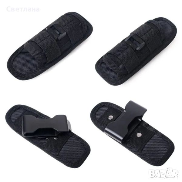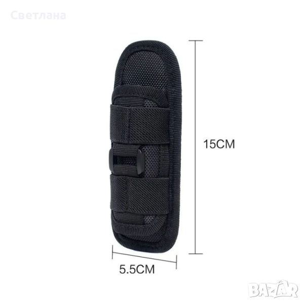 - удобни за туризъм и отдих- качествен материал и изпълнение- универсален - разтягащ се, подходящ за всеки тесен фенер- закача се за раница, колан и др.Характеристика:1. Изработен от висококачествени синтетични влакна със свойствата на здравина, устойчивост на износване и издръжливост, има дълъг експлоатационен живот.2. Лек и лесен за носене. Стабилизирайте фенерчето си и го предпазете от падане.3. Висококачествените еластични странични панели могат да защитят добре вашето фенерче.4. Силна въртяща се скоба (360 градуса) регулира добре осветлението дори когато се носи на колана.5. Отвореният дизайн осигурява лесен достъп до задната капачка на фенерчето.6. Подходящ за лов на открито, къмпинг, туризъм, риболов и други дейности.Спецификация:Материал: Синтетични влакнаТегло: 62 грЦвят черенТема: СпортНомер на модела: Кобур за колан с фенерчеТип спорт: къмпинг, туризъм, лов, риболов, спортове на откритоРазмер: 15х5.5х3.5смСъответният диаметър на фенерчето: 3смПодходяща ширина на колана: Характеристики 7 см: въртене на 360 градуса, издръжлив, преносимПакетът включва:1x кобур за фенерче (opp чанта)