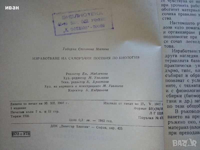 Изработване на саморъчни пособия по биология - Т.Митева - 1967г. → Обява 46263937