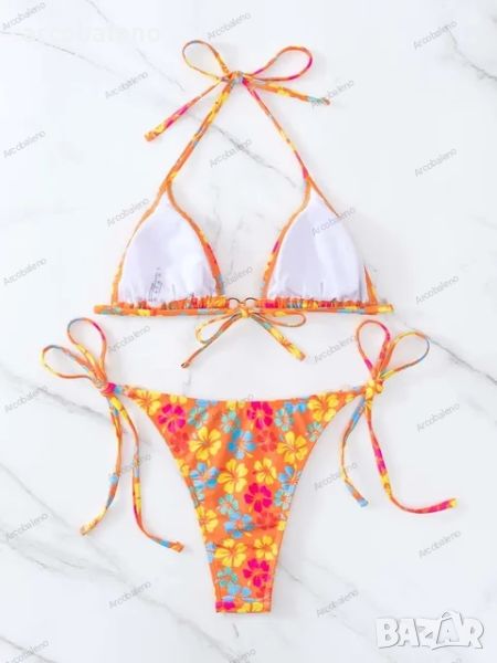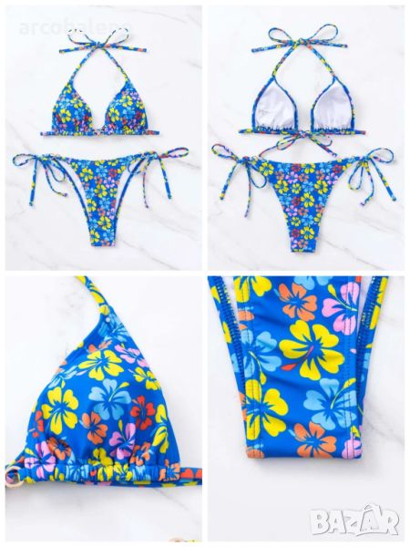 Секси дамски бански костюм с щампа и връзки, 4цвята