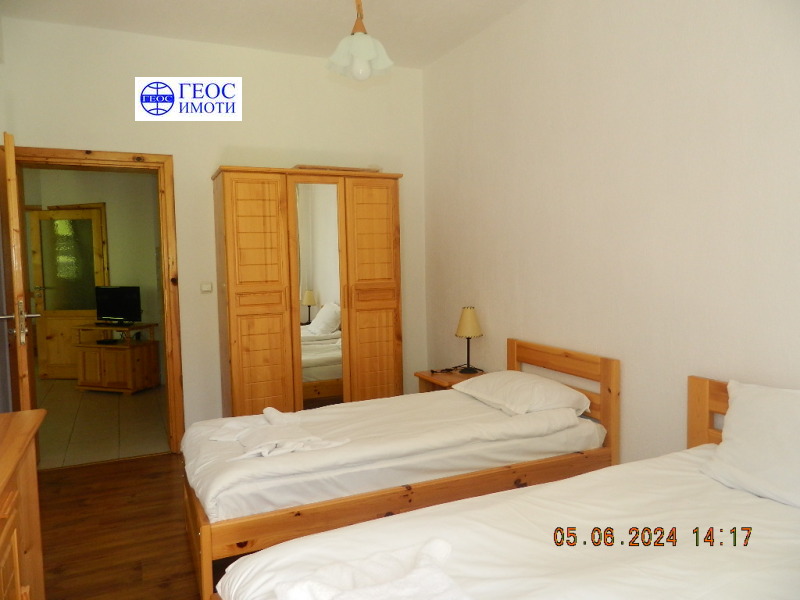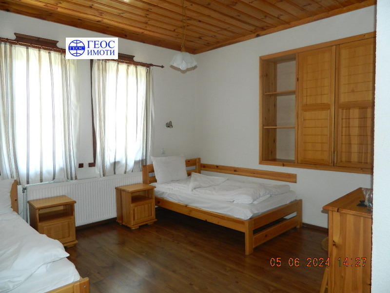 Продава се работещ хотел /въведен в експлоатация през 2013 г/, разположен в централната част на селото, но в същото време граничи и с борова гора. Състои се от два блока.
