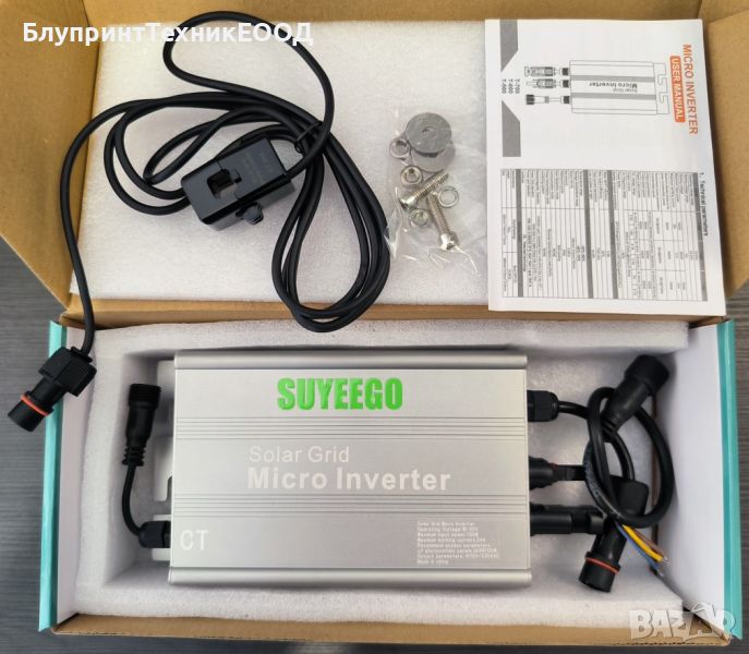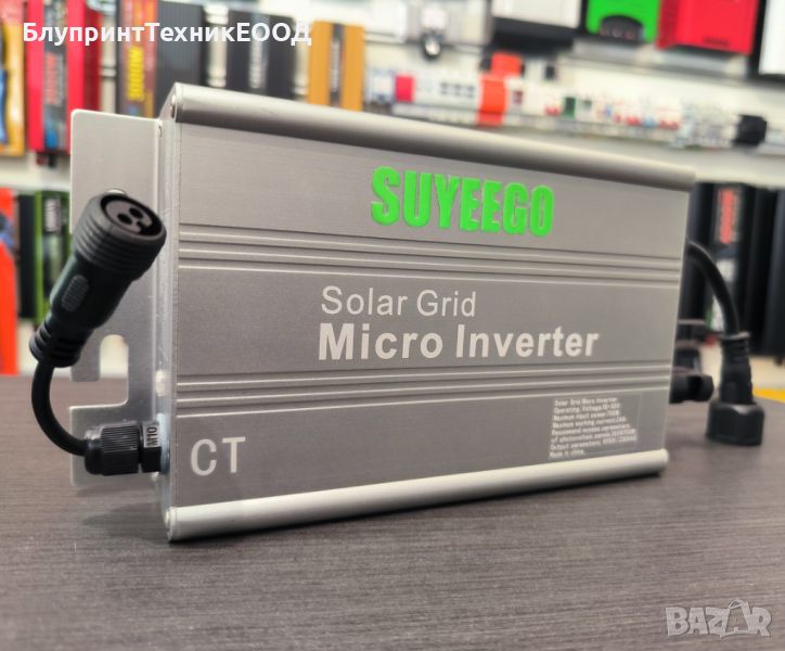 Предлагаме на вашето внимание микроинвертор с ограничител на марката Suyeego. Предназначен е да намали сметките ви за електроенергия. Тои добавя соларна енергия от фотоволтаични панели към вашето потребление, като по този начин консуматорите ви ползват приоритетно слънчнева енергия а недостига по естествен път го взимат от енергопреносната мрежа. Благодарение на токовия си трансформатор, инвертора не произвежда повече от колкото вие консумирате и по този начин няма риск от свръх производство което да се върне обратно към доставчика. По този начин няма риск от глоби или увеличаване на сметките ви за ток. Когато ползвате мрежови или микроинвертор, ако той не може да следи вашата консумация чрез токов трансформатор или двупосочен електромер (наричан неправилно "ограничител"), произведената неупотребена соларна енергия се връща към енергопреносното дружество. Тъй като електромерите в България са еднопосочни и не разпознават кога ползвате и кога връщате в мрежата, всяко движение през тях се отчита като консумация, съответно абоната заплаща върнатата в мрежата соларна енергия. Този инвертор е от малкото микроинвертори които имат токов трансформатор и при правилна инсталация няма как да подаде мощност обратно към "енергото"