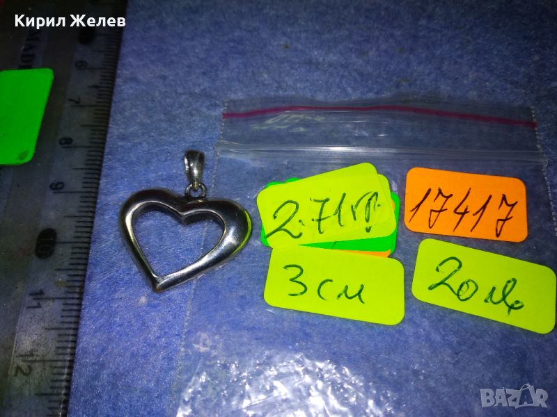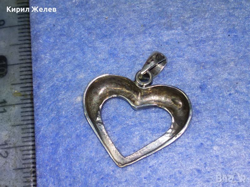 РОМАНТИЧЕН СРЕБЪРЕН ПЕНДАНТ СЪРЧИЦЕ СРЕБРО 925 с БЯЛА ПОЗЛАТА АРТ ВИСУЛКА МЕДАЛЬОН 17417