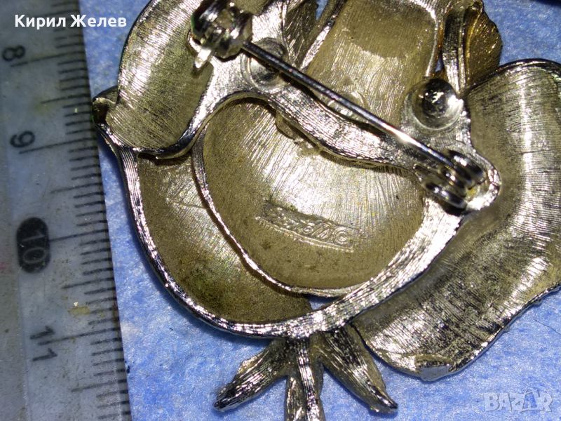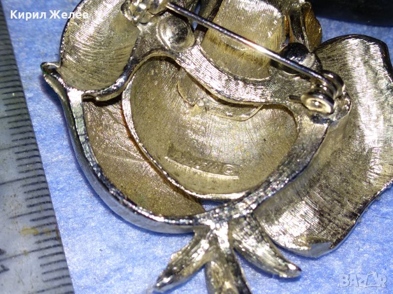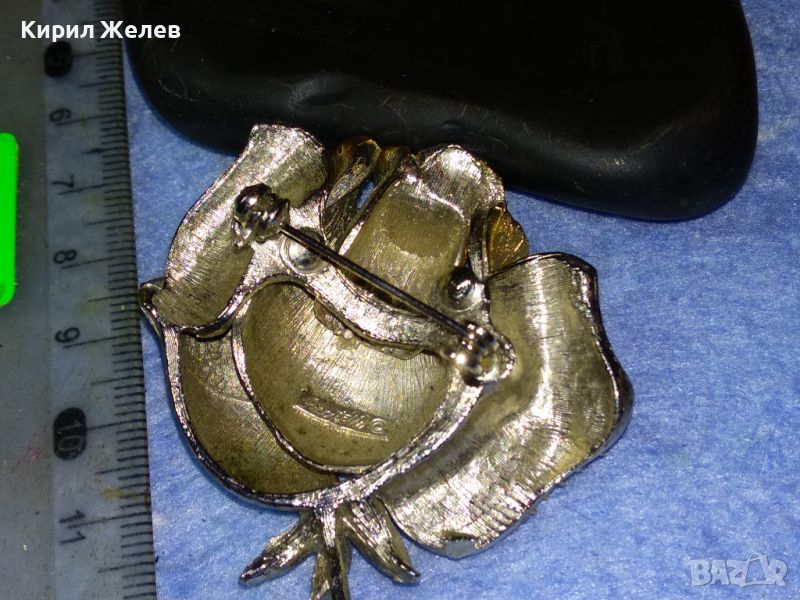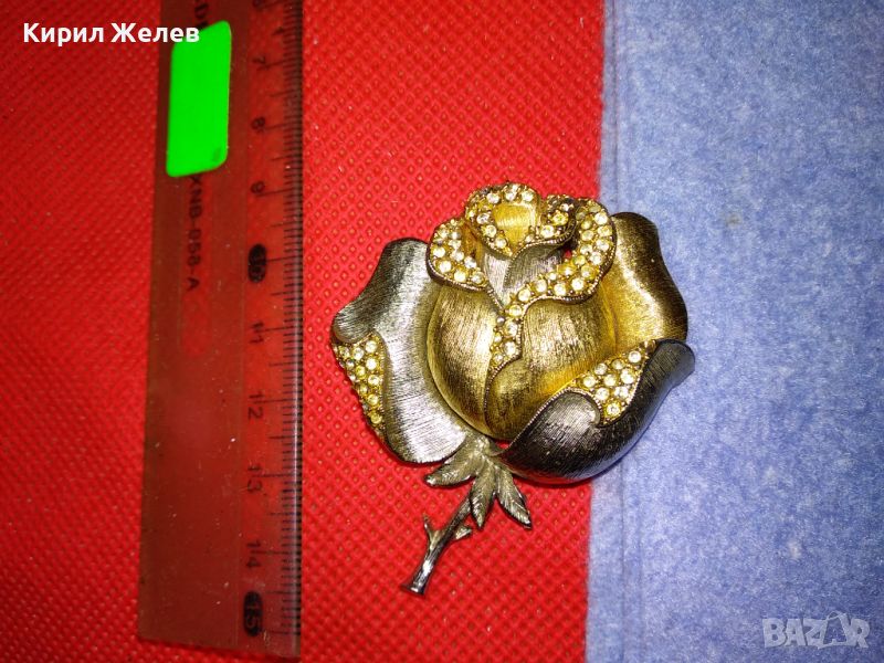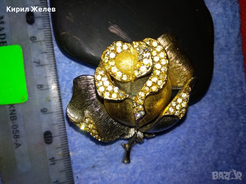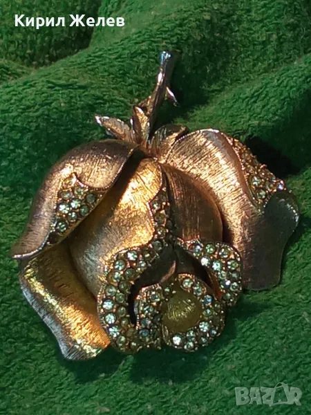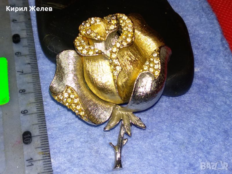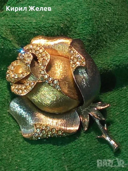 РАЗКОШНА МАРКОВА ВИНТИДЖ БРОШКА РОЗА ЦВЕТЕ МЕТАЛНА с ИСКРЯЩИ ФАСЕТИРАНИ КРИСТАЛИ 30493