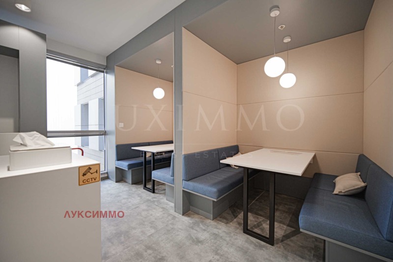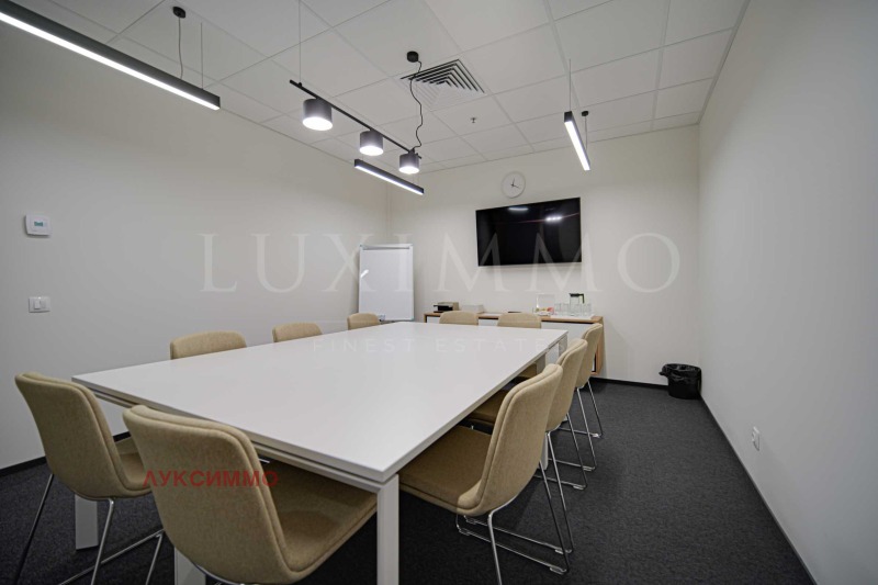 Предлага се напълно обзаведен с маси, бюра, столове и шкафове;