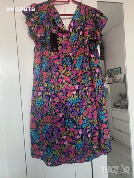 продавам цветна,чисто нова с етикет туника-рокля.Размери - подмишници - 67 см., ханш - 76 см.,дължина - 93 см.Много тънка за лятото,не прозира.