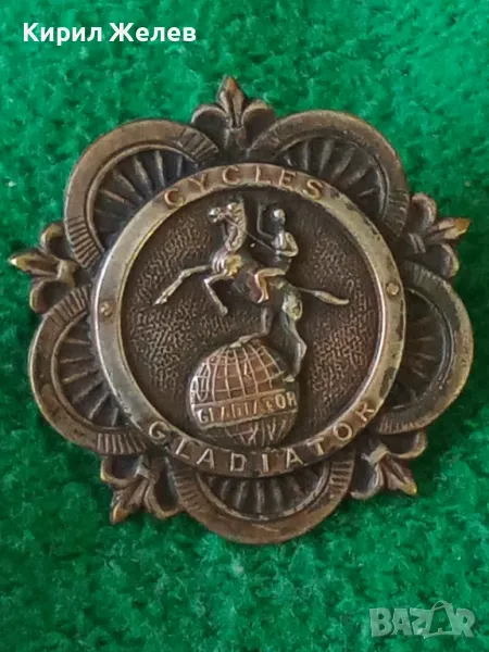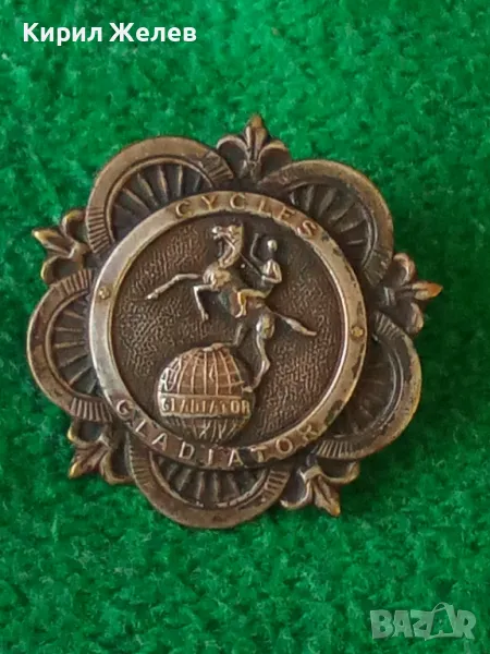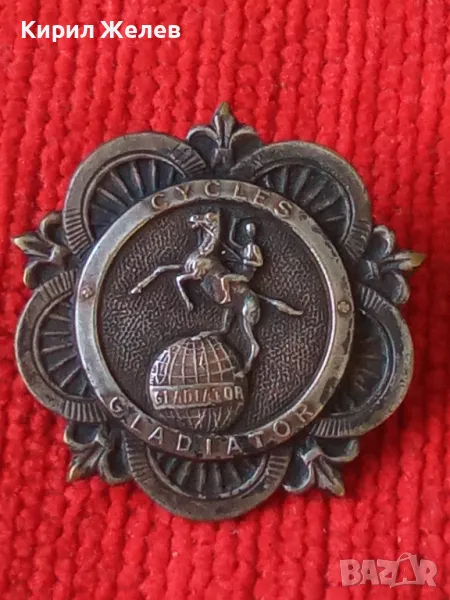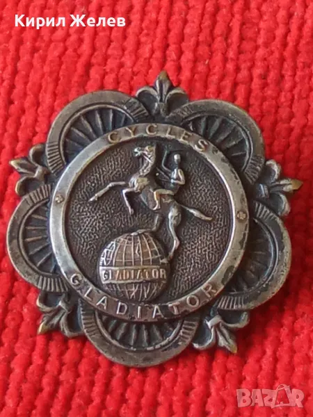 CYCLES GLADIATOR Стара РЯДКА МАРКОВА ФРЕНСКА ПОСРЕБРЕНА МЕДНА ЗНАЧКА За КОЛЕКЦИЯ 45664