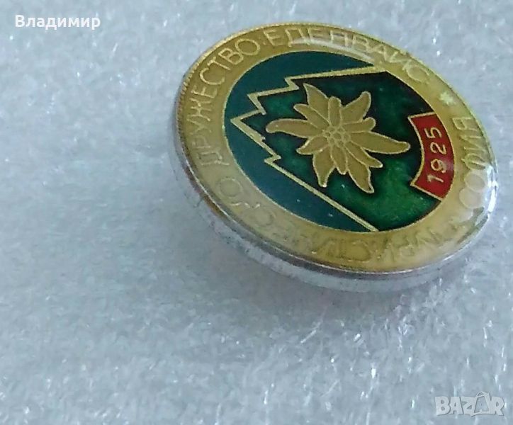 Продавам стара значка от 60-те/70-те години на миналия век на Туристическо дружество "Еделвайс" София, създадено през 1925 г.,