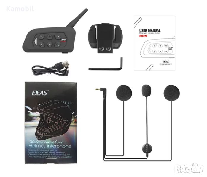 Интеркомът за мотоциклети EJEAS V4PLUS е усъвършенствано устройство, което комбинира най-новите технологии и практични функции, за да предложи на мотоциклетистите несравнимо качество на комуникация. С възможност за свързване към два телефона, поддръжка за приложението SafeRiding и допълнително дистанционно управление, V4PLUS предоставя цялостно решение, което да отговори на нуждите дори на най-взискателните потребители.