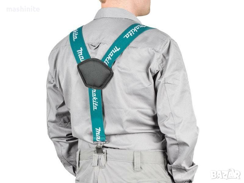 Тирантите за колан да Makita са в универсален размер, регулируеми, подходящи за всички. Триточковите скоби помагат за сваляне на тежестта от долната част на гърба. Издръжливи – изработени от здрав син ластик с лого на Makita. Подходящи за използване както с работно облекло, така и за ежедневието облекло. ИматмМека подложка на гърба за повишен комфорт , както и устойчиви щипки за закопчаване.