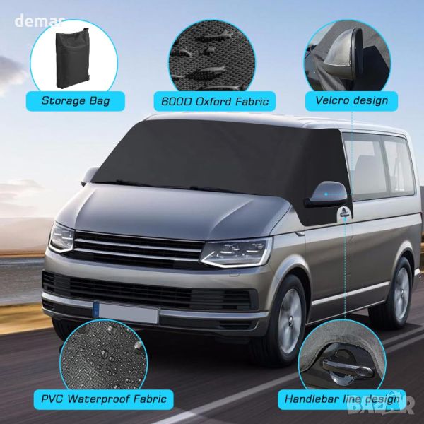 Това покритие за предно стъкло, предназначено за VW T7 2021-2024, е направено от удебелена 600D оксфордска тъкан и екологично чист PVC водоустойчив плат, осигуряващ издръжливост, водоустойчивост, устойчивост на петна и UV защита. Лесно се монтира с долна фиксираща лента и може удобно да се сгъва и съхранява, когато не се използва. Съвместим с Volkswagen T7, включва чанта за съхранение. Мултифункционалният капак също помага да поддържате вашия RV хладен и предпазва екстериора на вашия автомобил от вредните UV лъчи, което го прави издръжлив и основен аксесоар.