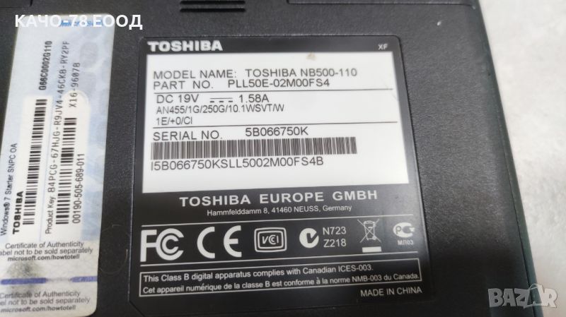 Лаптоп Toshiba NB500-110 - втора употреба