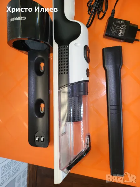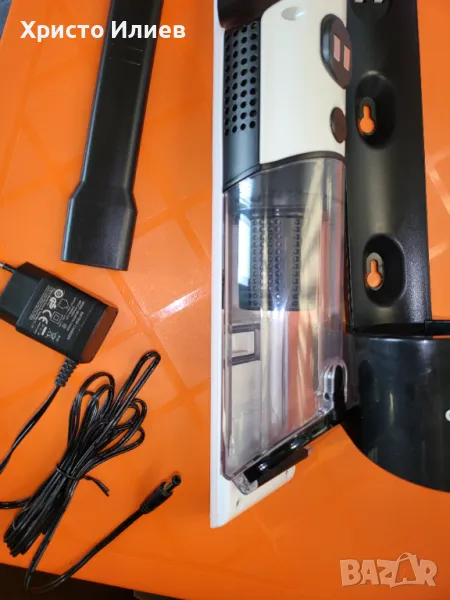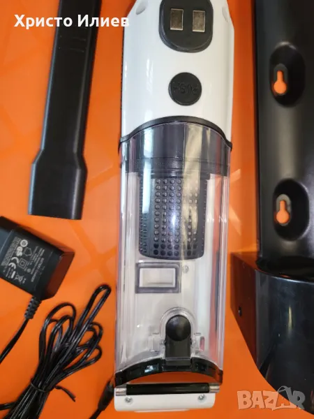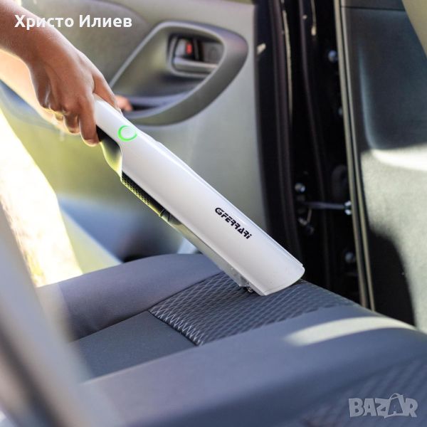Безжична прахосмукачкаПрактична и универсална като прахосмукачка за пътуване, тя е оборудвана с аксесоари като ъглова засмукваща дюза и мини четка. Идеален за използване у дома или в колата, когато пожелаете.Техническа характеристика:• Ефективен DC мотор със смукателна мощност > 5 kPa• Литиева батерия с голям капацитет 11.1V - 2000mAh• 2 степени на мощност• Капацитет на съда: 220 мл• Нисък шум < 75dBa• Адаптер: IN: AC 100-240V ~ 50-60Hz - OUT: 14V – 0.5A• Батерия: 11.1 V. Мощност: 80w• Размери (Ш x В x Д): 44,5 x 7 x 6,5 см. Тегло: 900грG90027 - Детайл 1G90027 - Детайл 2G90027 - Детайл 3Лесен за почистванеХигиеничното изпразване на контейнера за прах прави почистването на домакинския уред практично. Всичко ще бъде по-бързо!Висока производителност на филтъраВсмуква със сила от 5 KPa благодарение на батерия от 11,1 V и 2000 mAh и е оборудван с HEPA филтър, който гарантира пълно филтриране (99,95%).Удобна акумулаторна основаСлед употреба можете да съхранявате акумулаторната прахосмукачка в основата с възможност за монтиране на стена, за да бъде винаги заредена и готова за употреба.