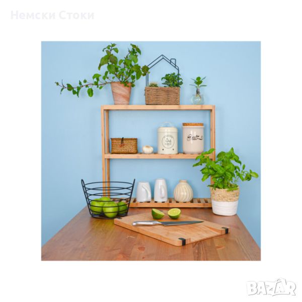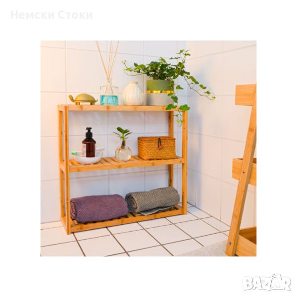 Стенен рафт от бамбук - 60x54x15 см - кухненски рафт/рафт за баня