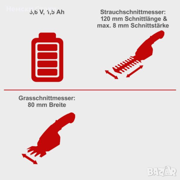 Акумулаторна ножица за трева и храсти CGS-15-Li Set Scheppach