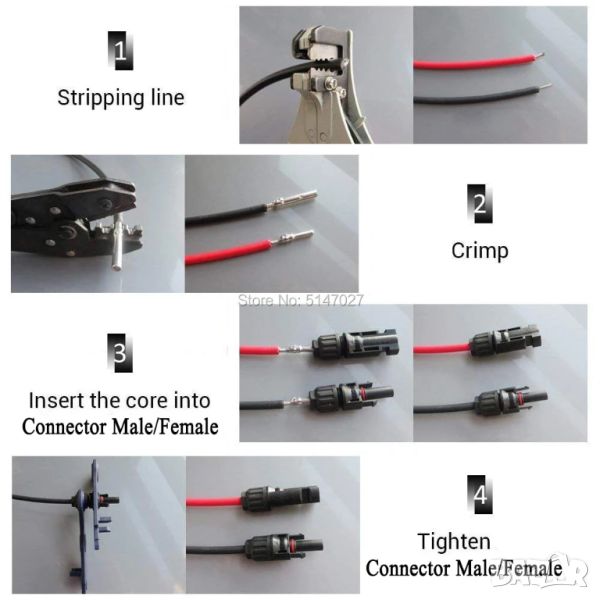 Мъжки и женски конектор за соларен панел 2,5 mm2/4 mm2/6 mm2