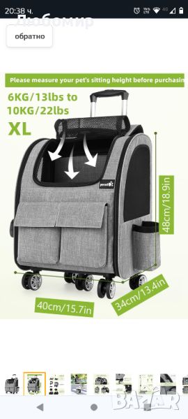 pecute раница за количка за домашни любимци, чанта за кучешка раница на колелца