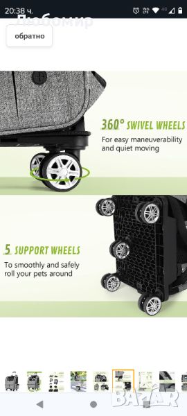 чанта за кучешка раница на колелца, многофункционална подвижна кошница с регулируема височина, дишаща кошница за домашни любимци с много джобове за котки и кучета (сива, XL).Тази кошница е универсална и удобна, с възможност за използване като количка за домашни любимци с форма на багаж, раница за домашни любимци или подвижна кошница. Той е идеален за собственици на домашни любимци, които искат гъвкавост в начина, по който транспортират космати приятели. С надграден голям размер от 48*40*34 см, той е подходящ за носене на домашни любимци до 15 кг, като котки, малки кучета и средно големи кучета.Количката за домашни любимци Pecute разполага с кормило от алуминиева сплав с две регулируеми височини (91 см и 101 см) и ергономичен дизайн. Оборудван е с пет подобрени въртящи се на 360° колела, които ви позволяват безопасно и удобно да търкаляте вашия домашен любимец. Количката може да се отдели от чантата, сгъваема и преносима за удобна употреба.Носачката разполага с мрежести странични и предни прозорци за оптимална вентилация и въздушен поток. Той предоставя множество лесни начини да пуснете вашия домашен любимец вътре и навън. Предпазният колан отвътре и циповете с катарама отвън гарантират, че вашият космат приятел ще остане защитен по време на транспортиране.Кошът включва различни отделения отстрани, отпред и дори отзад, осигурявайки достатъчно място за съхранение на храна за домашни любимци, бутилки за вода, играчки и аксесоари. Той също така разполага с чанта за съхранение на презрамка, която предпазва презрамката от замърсяване или оплитане в колелото, когато се използва като чанта за количка.