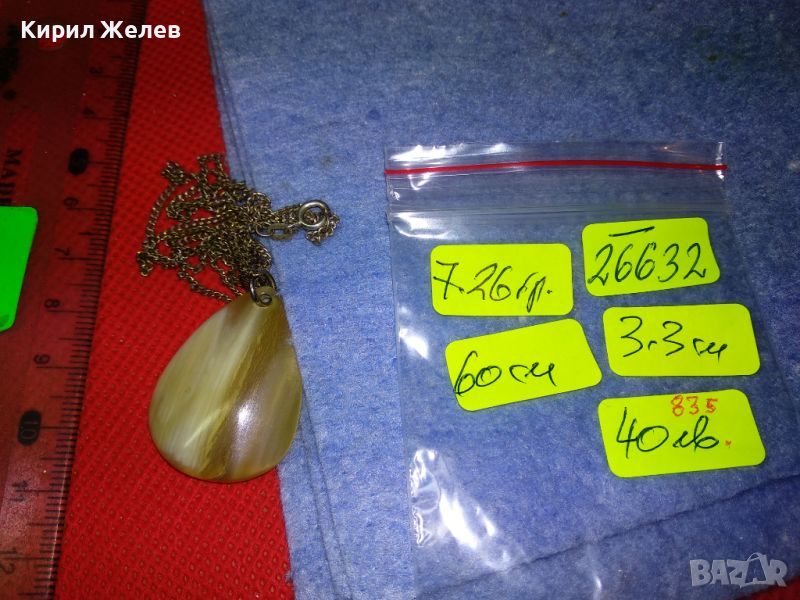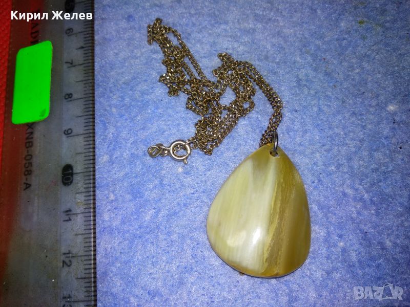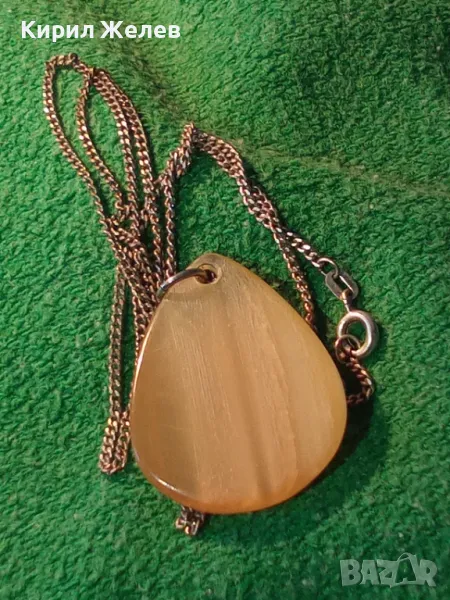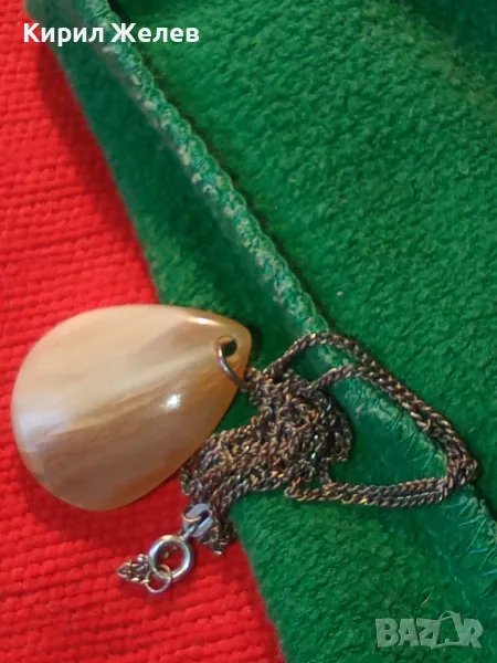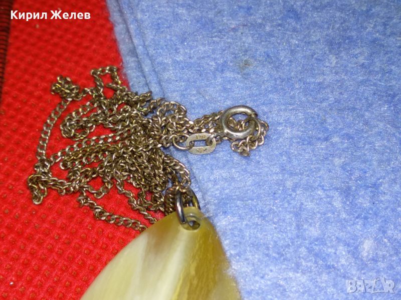 СТАРИННО СРЕБЪРНО КОЛИЕ СРЕБРО 835 ПРОБА с МЕДАЛЬОН от ШЛИФОВАН РОГ МАЙСТОРСКО РЕТРО БИЖУ 26632