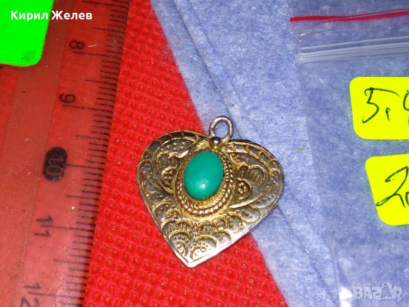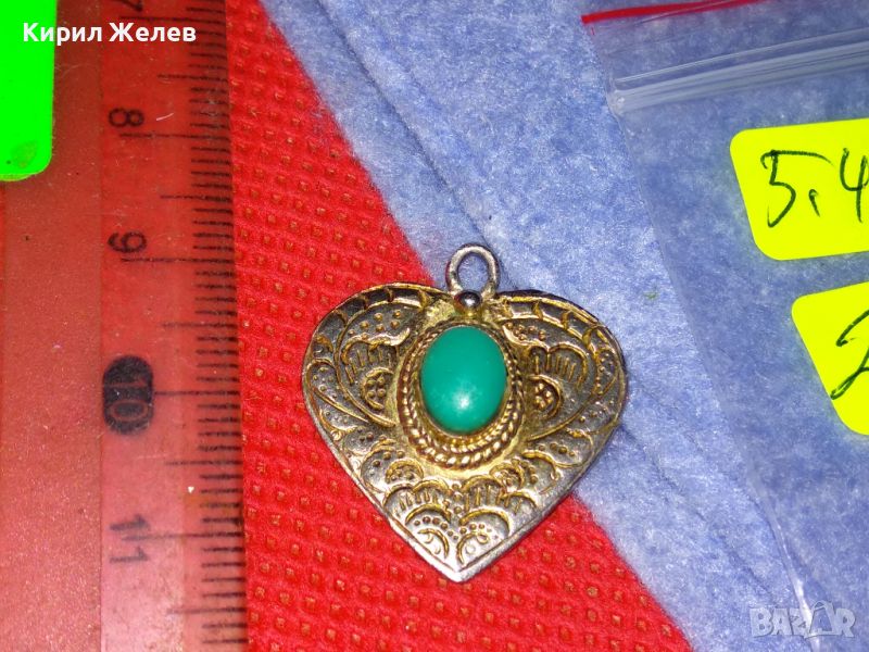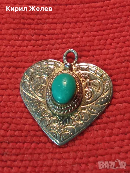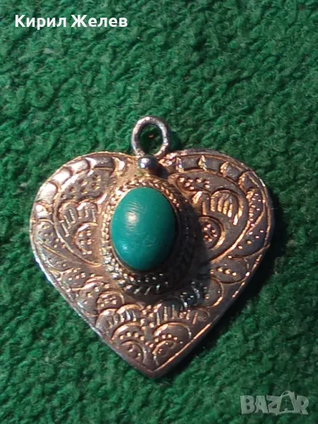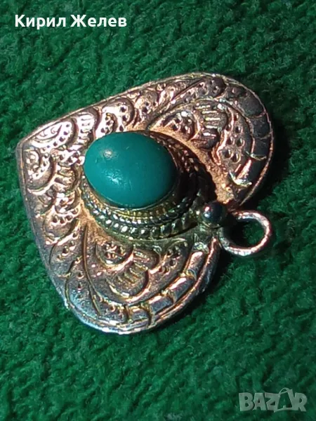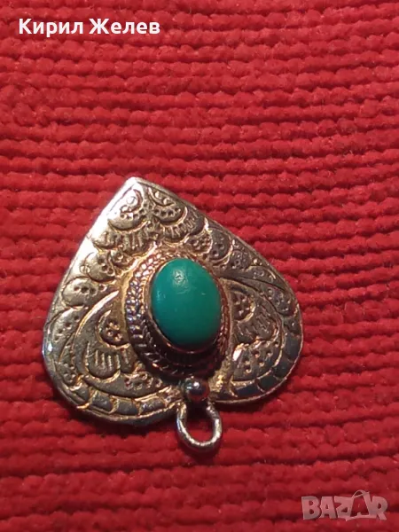 СТИЛНО ОРНАМЕНТИРАН СРЕБЪРЕН МЕДАЛЬОН СЪРЧИЦЕ СРЕБРО 925 с ШЛИФОВАН ТЮРКОАЗ РЕТРО БИЖУ АНГЛИЯ 26409