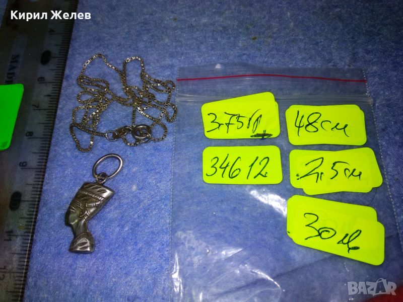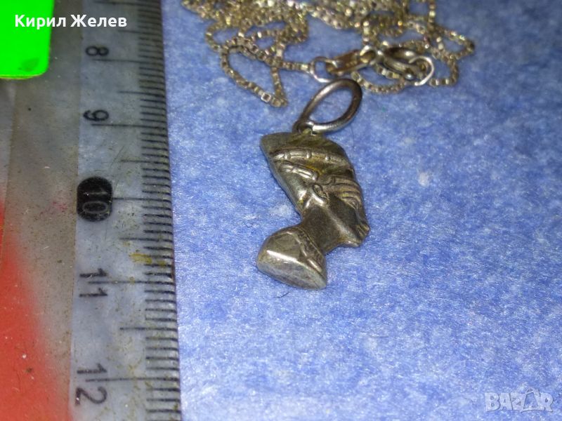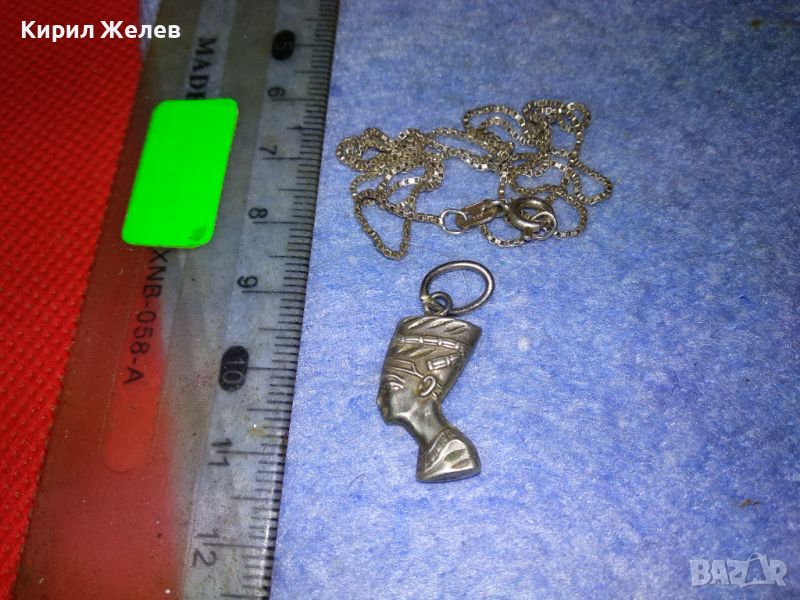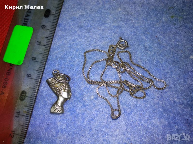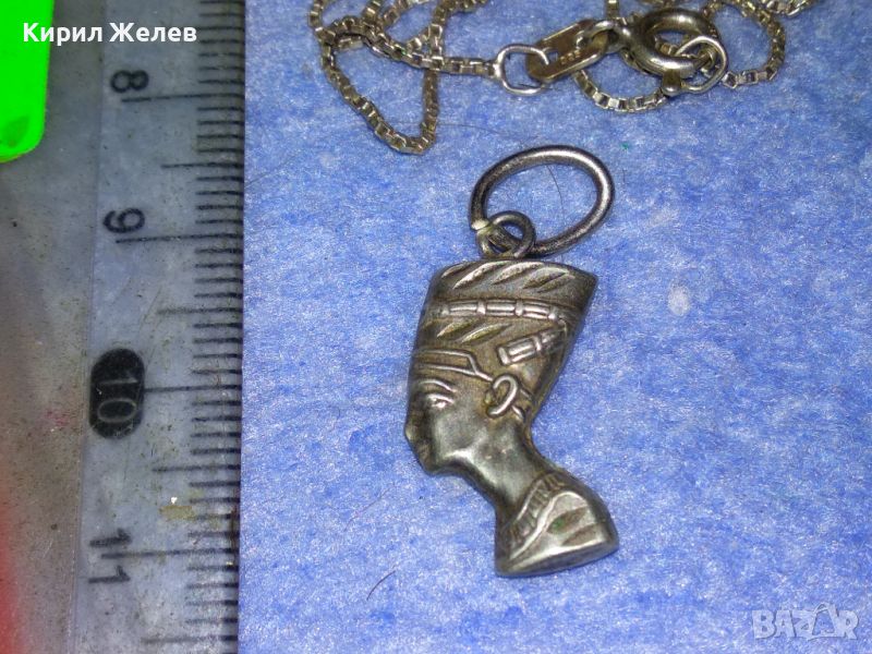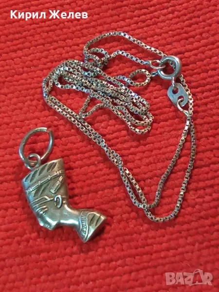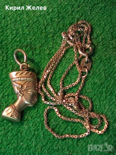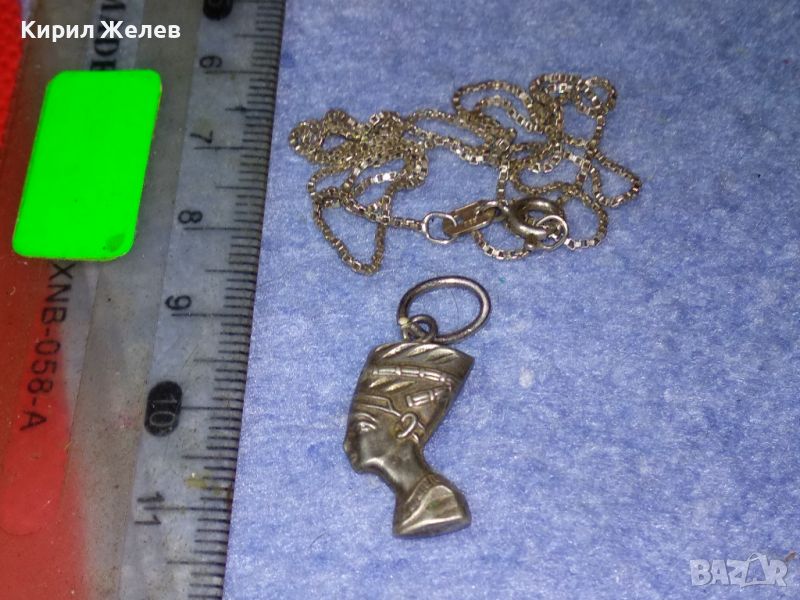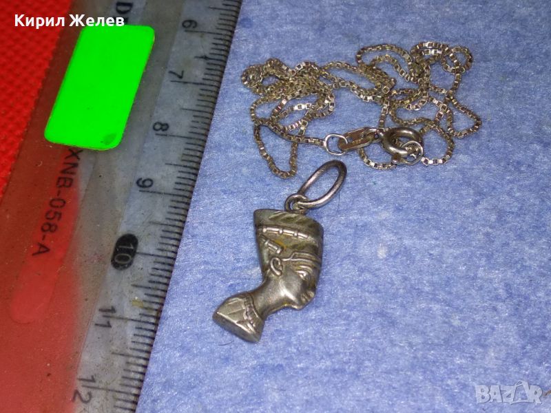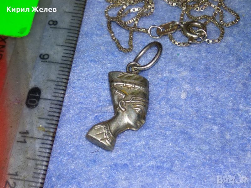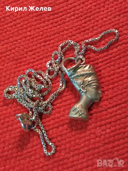 Стар СРЕБЪРЕН МЕДАЛЬОН НЕФЕРТИТИ СРЕБРО ВИСОКА ПРОБА с ФИНА СРЕБЪРНА ВЕРИЖКА СРЕБРО 925 ПРОБА 34612