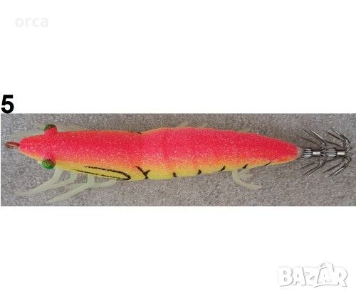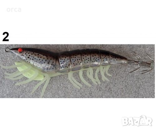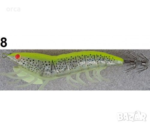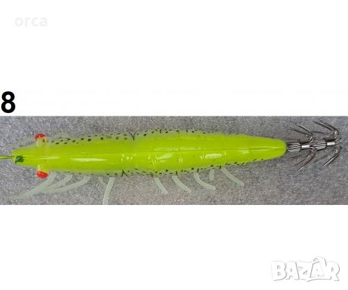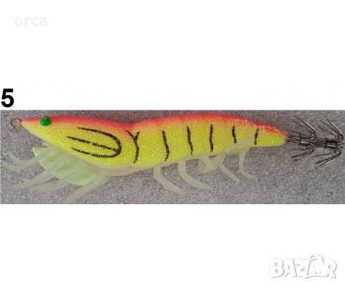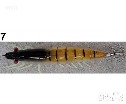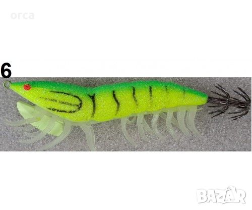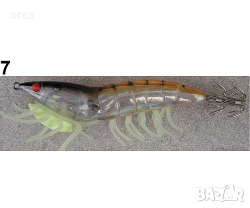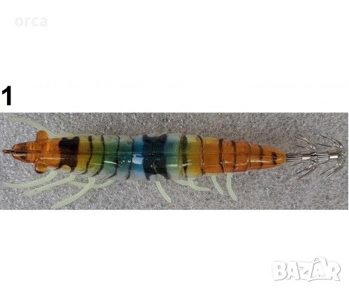 Калмарка тип скарида OKINWA SQUID HOUNTER е висококачествена изкуствена примамка за морски риболов, създадена специално за улов на калмари и сепии. Благодарение на светещите крачета, ярките цветове и тракащия звук, примамката привлича хищника дори при слаба видимост и по-голяма дълбочина 🌊⚡