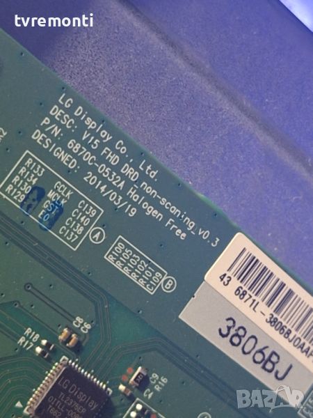 TCon BOARD ,6870C-0532A 6871L-3806B for Finlux 43-FFB-5600 43inc DISPLAY VES430UNDL-2D-N12, снимка 1 - Части и Платки - 46287109 TCon BOARD ,6870C-0532A 6871L-3806B for Finlux 43-FFB-5600 43inc DISPLAY VES430UNDL-2D-N12, снимка 2 - Части и Платки - 46287109 TCon BOARD ,6870C-0532A 6871L-3806B for Finlux 43-FFB-5600 43inc DISPLAY VES430UNDL-2D-N12, снимка 3 - Части и Платки - 46287109 TCon BOARD ,6870C-0532A 6871L-3806B for Finlux 43-FFB-5600 43inc DISPLAY VES430UNDL-2D-N12, снимка 4 - Части и Платки - 46287109 TCon BOARD ,6870C-0532A 6871L-3806B for Finlux 43-FFB-5600 43inc DISPLAY VES430UNDL-2D-N12, снимка 5 - Части и Платки - 46287109 TCon BOARD ,6870C-0532A 6871L-3806B for Finlux 43-FFB-5600 43inc DISPLAY VES430UNDL-2D-N12, снимка 6 - Части и Платки - 46287109 1/6