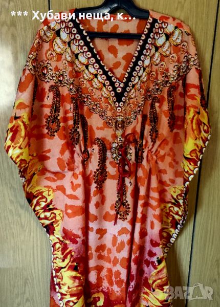 👌👌👌Луксозно копринено парео тип туника.👀💥 PLUS SIZE 2-3XL👀💥 Луксозно.💕😎Цена 17 €. Елегантна копринена туника с цветен принт, нюанс старо злато на черен фон. Подходящо за море, басейн и у дома ако обичате да изглеждате винаги добре. Моделът е One-size, но е подходящ за по- пухкави дами.