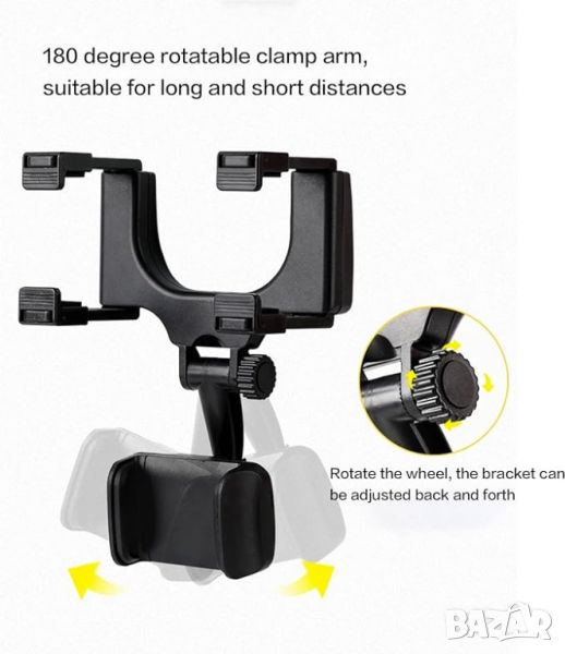 - 【Въртене на 360°】: Поддържаща телемобилна количка поддържа въртене на 360 градуса, лесна за сглобяване, може да се монтира на огледалото за обратно виждане.