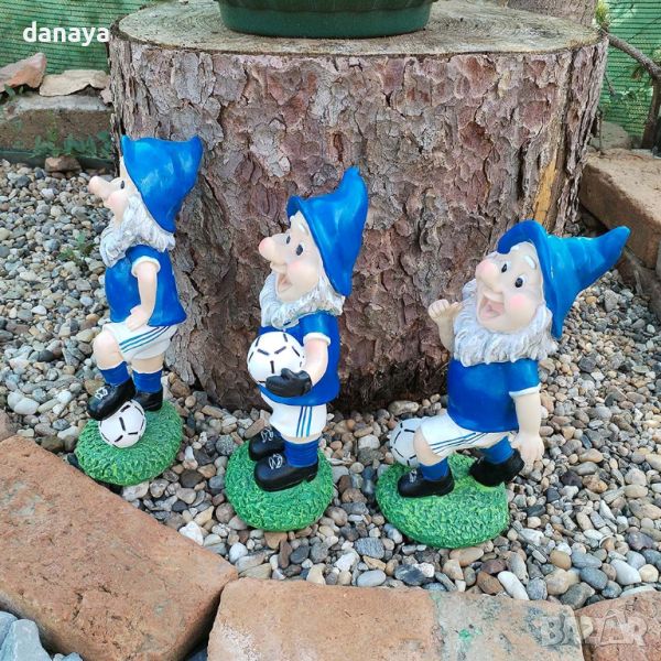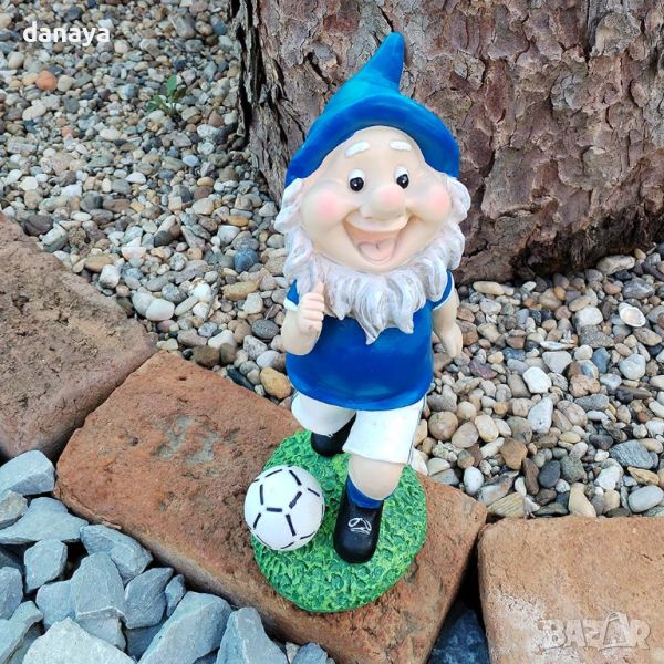 Градинска декорация фигура джуджета футболисти. Тези фигурки от смола са устойчиви на ултравиолетови лъчи, устойчиви на ръжда, водоустойчиви и устойчиви на избледняване, така че да могат да издържат на различни атмосферни условия. Статуите са подходящи за декориране на градински кътчета, дворове и балкони.