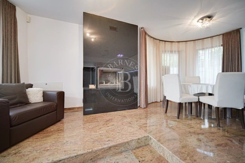 Втори етаж - антре, просторна и напълно обзаведена всекидневна, обособена трапезария, френски прозорци, откриващи прекрасна гледка към вътрешния двор, модерна ''П''-образна отворена кухня, оборудвана с висок клас уреди, работеща камина на газ, тоалетна за гости, голяма слънчева тераса;