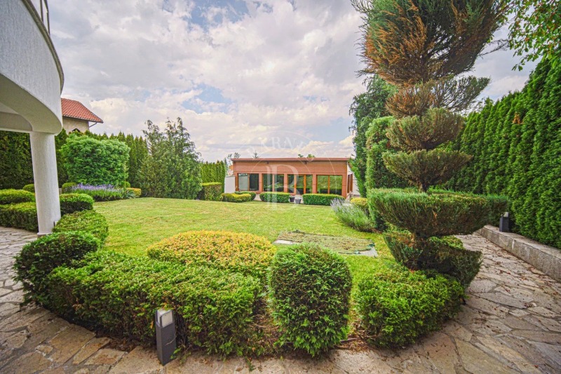 Имотът се простира върху парцел с площ от 860 кв.м и обхваща просторна триетажна къща с модернистична фасада и 300 кв.м разгъната застроена площ, голям професионално озеленен вътрешен двор и отделна къща за гости, със застроена площ от 100 кв.м.