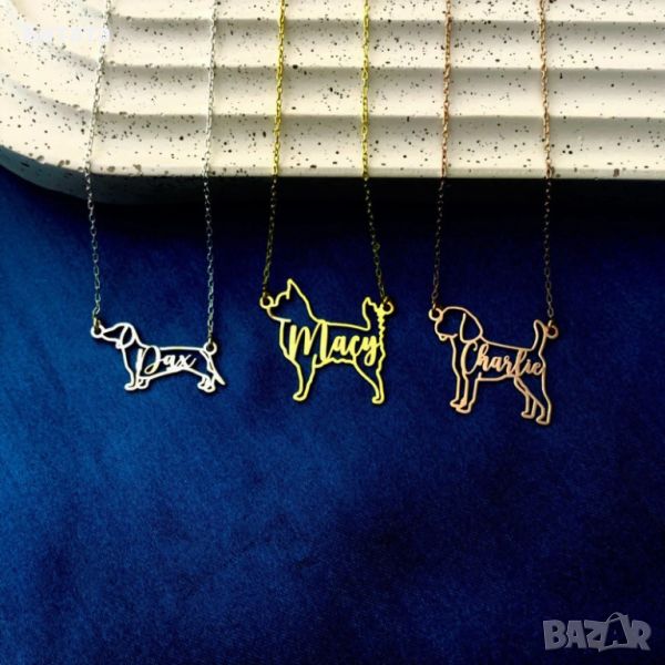 Сребърно колие с име на куче, подарък в памет на куче, колие с куче → Обява 46290616