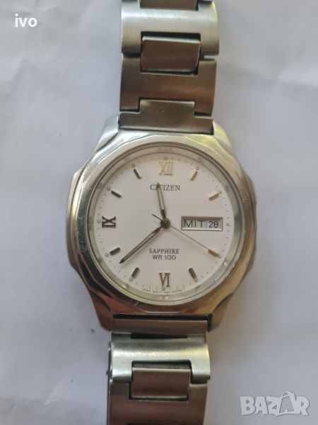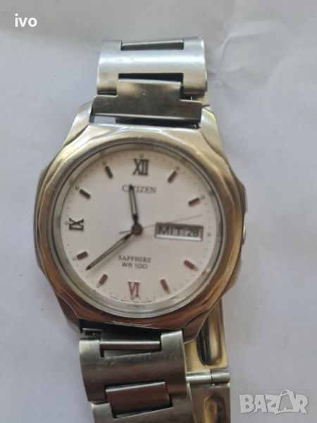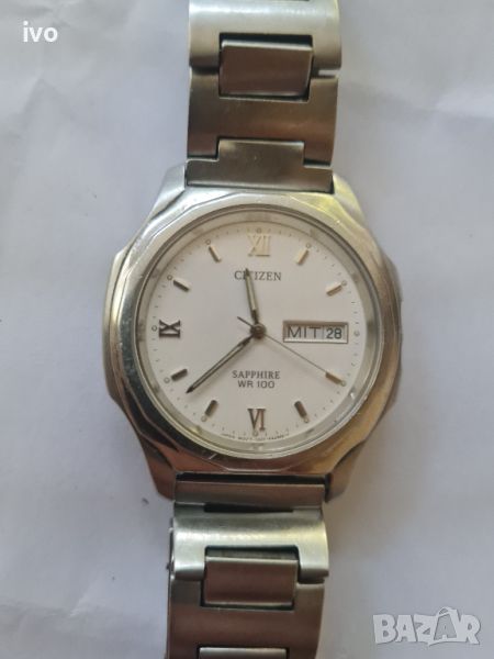 Оригинален часовник citizen sapphire wr100 в много добро състояние.часовника работи но има лек проблем от копчето не може да се свери,мести само датата и деня а не може да се свери,иначе си работи.