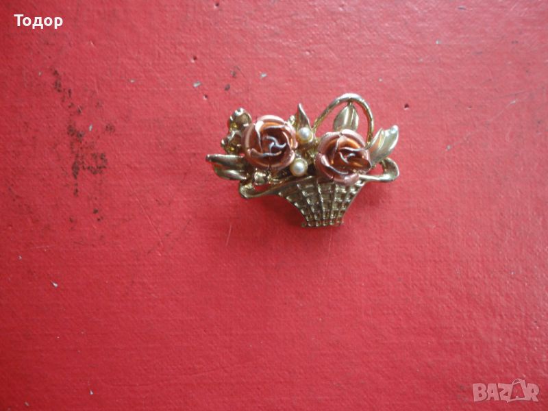 Позлатена брошка с перли и емайл 52 → Обява 46292826