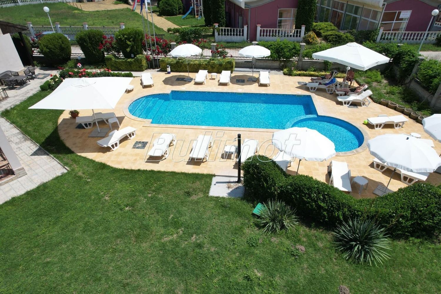 БУЛ ИМОТ предлага уникален имот на едно от най-предпочитаните крайморски селца Кранево.Спокойствието и приказната морска природа осигуряват атмосфера за пълноценна почивка.Със своето приказно съчетание между китна зеленина и чисти плажове КРАНЕВО се нарежда на едно от най предпочитаните места за семейна ваканция.Вилата се намира на тихо и спокойно място с отлична локация разположена едновремено близо до главна улица и на броени минути от плажната ивица.Разполага със общо 7 апартамента, от които 2 са мезонети всички апартаменти са луксозно обзаведени. Също така има басейн и удобни паркоместа за почиващите.