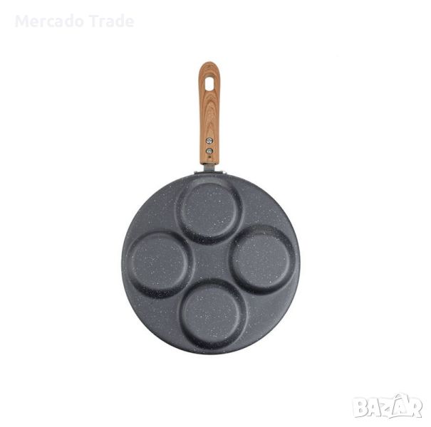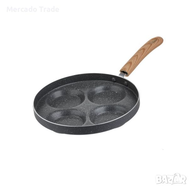 Тиган с незалепващо покритие за палачинки и яйца с 4 позиции по 9см. Предлага се в сив цвят с дръжка 16 см.