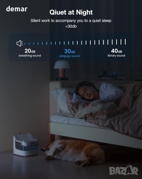 Фонтан за домашни любимци PETGUGU, 2 литра, 8 слоя филтри, 2.4G WiFi