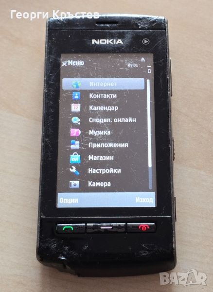 N95 - включва се и работи, не мога да кажа дали си зарежда батерията, активен и стегнат слайд, БГ меню, клавиатура и камера са неизвестни, слушалката, микрофона и подсветката са ОК, лош външен вид, за смяна на панел и дисплей, нито клавиатурата, дисплея само свети, НЕ дава образ, без батерия, заден капак и зарядно.