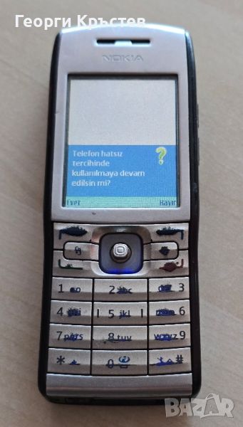 Е50 - телефона се включва и работи, тестван с А1, нямам друга за проба, зарежда си батерията, БГ меню и камера неизвестни, слушалката и микрофона са ОК, цифра 3, *(звезда), #(диез), ляв функционален бутон, както и бутон меню, НЕ работят, копчето за включване го няма, добър външен вид, без батерия, заден капак и зарядно.