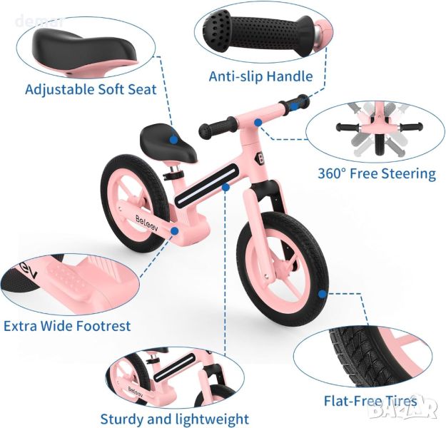 12-инчов детски велосипед за балансиране BELEEV със светещи колела и рамка, 2-6 години
